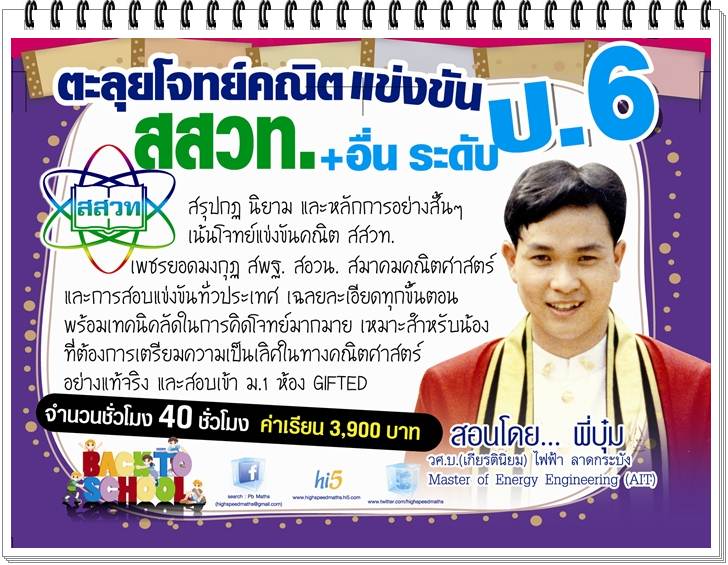คอร์สใหม่ !! คณิต ป.6 เพื่อสอบแข่งขัน สสวท. และอื่นๆ สอนโดย.....พี่บุ๋มทุกเรื่อง